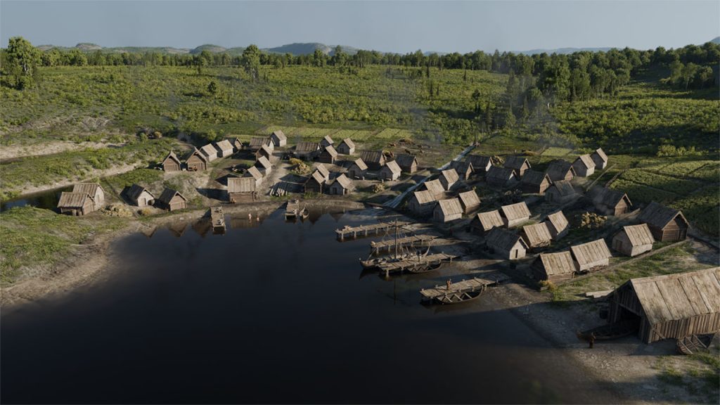 Skien var et tidlig sentrum for bosetting og aktivitet i Grenland allerede i vikingtiden, med kontinuerlig befolkning og handel fra før år 1000. Det finnes spor etter tidlige boliger og strukturer under dagens byområde, som tyder på at stedet utviklet seg naturlig som et knutepunkt for handel og bebyggelse.